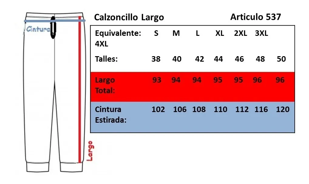Calzoncillo largo interlock y del 38 al 44 y del 46 al 50.
