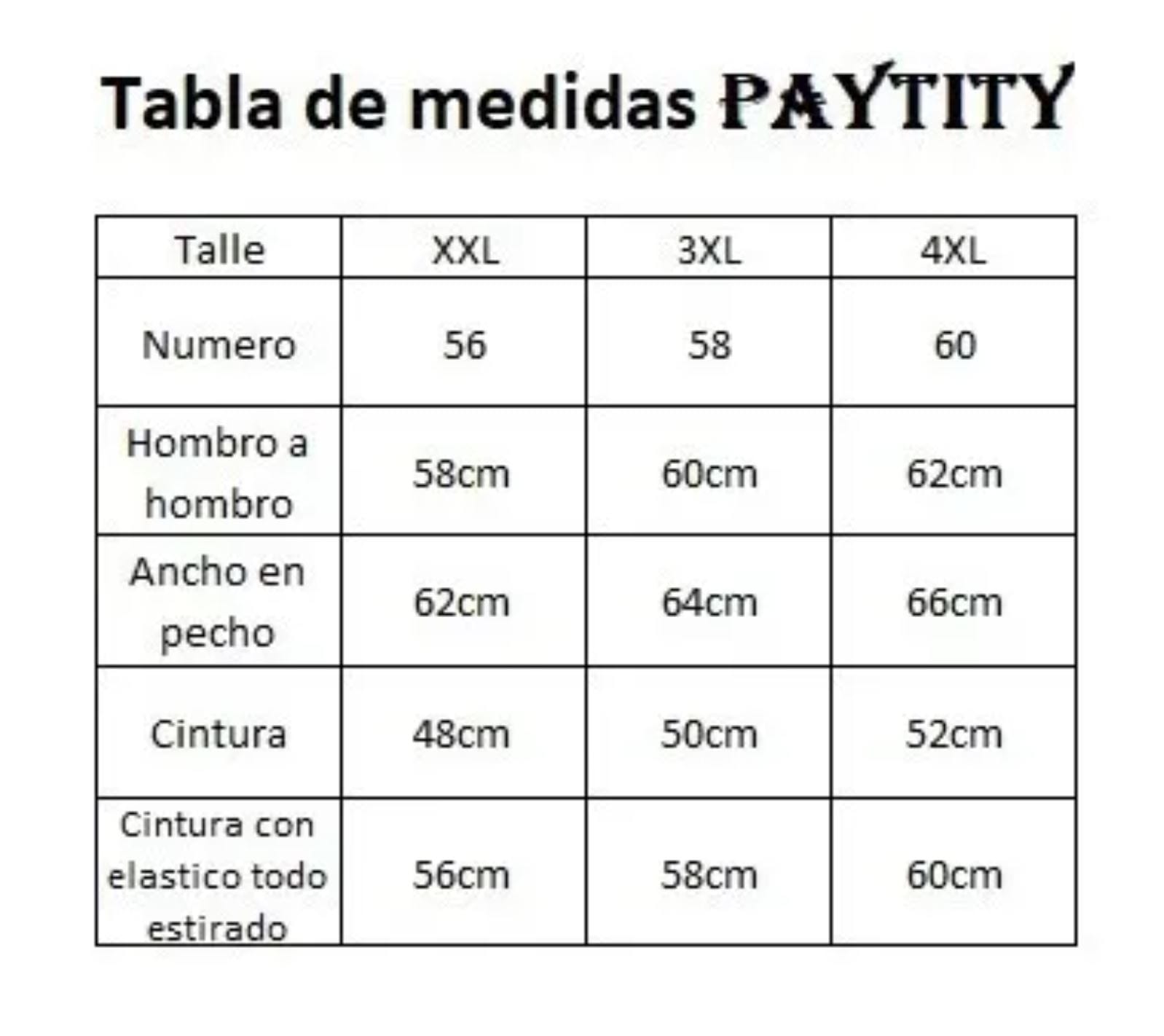 | TALLES ADULTOS | 46, 48, 50, 52, 54, 56, 58, 60 |