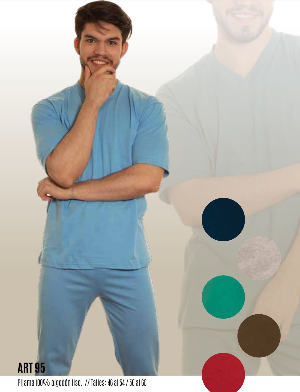 Pijama jersey liso puro algodón manga corta pantalón largo
