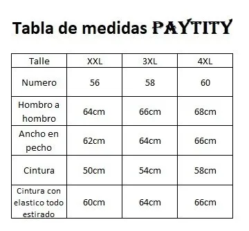 | TALLES ADULTOS | 46, 48, 50, 52, 54, 56, 58, 60 |