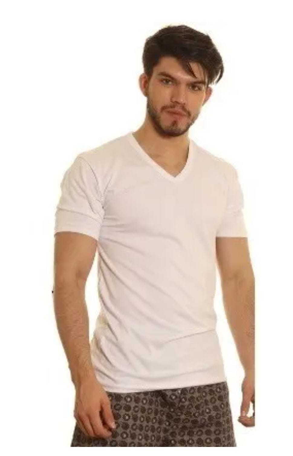 Camiseta Jersey manga corta escote en V. Colores surtidos sujetos a disponibilidad de stock. Precio variable según el talle.
